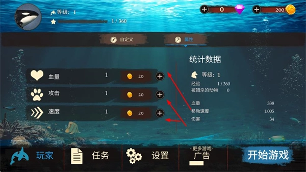 通過捕獵、探索積累生存經(jīng)驗,解鎖更強大的生存技能與身體能力,提升游泳速度、咬合力等屬性,讓虎鯨在殘酷海洋中更具競爭力。