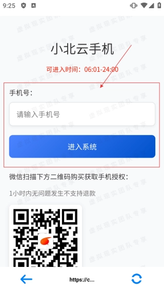 2、進(jìn)入小北云手機(jī)界面,可【輸入手機(jī)號,進(jìn)入系統(tǒng)】,享受小北云手機(jī)服務(wù)。