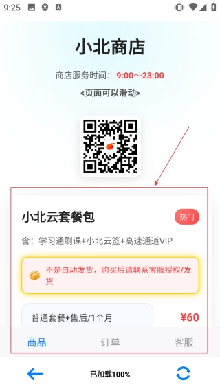 3、進(jìn)入小北商店界面,可【查看小北云套餐包,了解商品、客服信息】,享受套餐購買與服務(wù)咨詢。