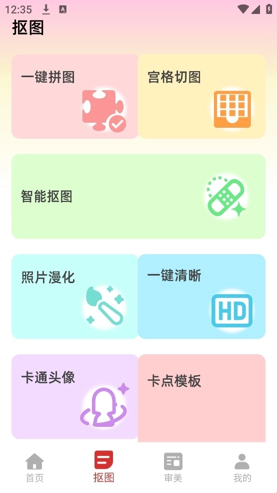 2、進(jìn)入軟件首頁,可看到各類豐富功能模塊,點(diǎn)擊下方【摳圖】選項(xiàng)進(jìn)入對應(yīng)功能區(qū)。