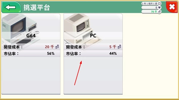 2、選擇開發(fā)平臺,不同平臺有不同的開發(fā)成本和市占率,影響游戲的市場表現(xiàn)。