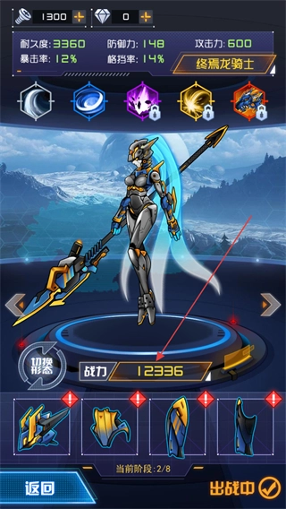 3、把下方已解鎖的部件拖至機(jī)甲上進(jìn)行裝備,以此提升機(jī)甲的戰(zhàn)力與屬性。
