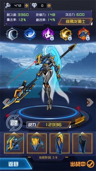 4、輕點(diǎn)機(jī)甲左下角的切換形態(tài)按鈕,便能查看機(jī)甲的龍形態(tài),同時(shí)還能進(jìn)行部件組裝。