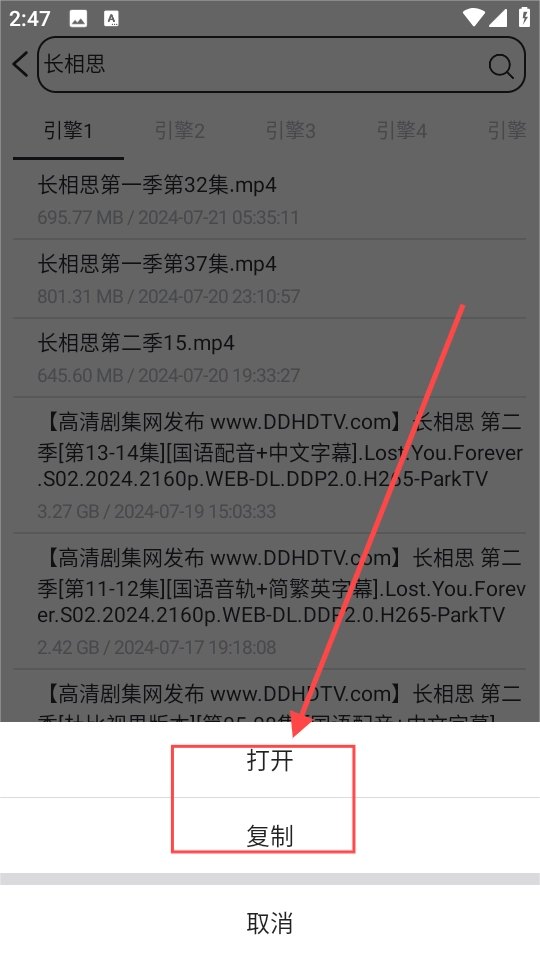 3、以“長(zhǎng)相思”為例,輸入關(guān)鍵詞后點(diǎn)擊搜索按鈕,系統(tǒng)將為您展示相關(guān)資源列表。