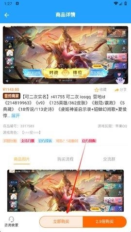 4、在賬號列表中找到心儀的賬號,點擊“立即購買”,按照提示完成交易流程。