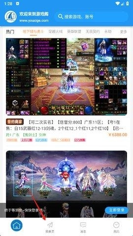 1、點擊內(nèi)的“我要賣號”或“我要賣專區(qū)”入口。