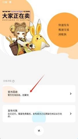 2、用戶可在“回收”與“發(fā)布代售”這兩種渠道中進行選擇。挑選出適合自身的方式后,進入下一步。