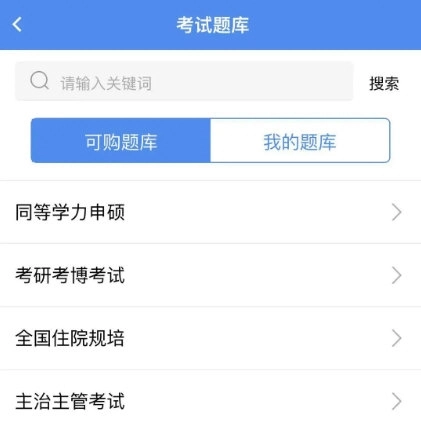 3、點(diǎn)擊考試題庫(kù),可以查看我的題庫(kù)和可購(gòu)買的題庫(kù)