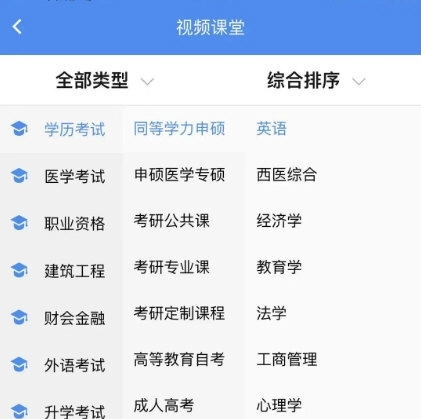 2、點(diǎn)擊進(jìn)入視頻課堂,選擇學(xué)習(xí)類型和具體的科目