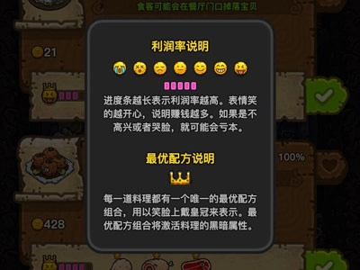 1在地圖里,除了寶箱,諸如尸體堆這類地方,同樣有可能掉落觸媒、殘頁(yè)等稀有道具。要是資源獲取比較困難,不妨多刷幾遍;要是實(shí)在獲取不到,還能通過(guò)觀看廣告來(lái)加快獲取進(jìn)程。在研發(fā)料理的時(shí)候,點(diǎn)擊藍(lán)色坩堝,就會(huì)出現(xiàn)噴氣特效。黑暗屬性包含三種:掉寶率提升、銷售速度加快以及烹飪效率提高。