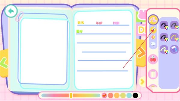 3、在右側(cè)選擇畫筆和貼紙圖案進行手賬的編輯,可以填寫上寶寶的相關(guān)信息。