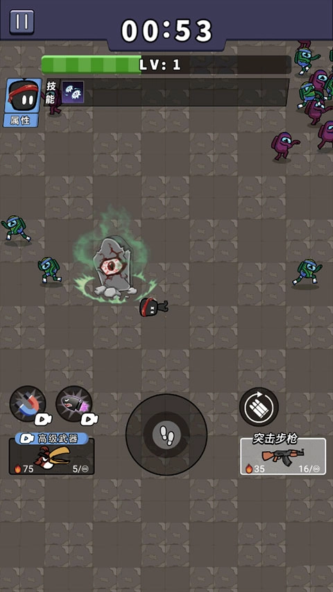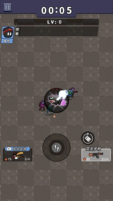 3、滑動(dòng)中心按鈕躲避敵人的攻擊,與他們保持一定的距離,英雄會(huì)自動(dòng)射擊、自動(dòng)刷新子彈;