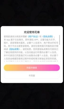 1、第一步,先安裝花緣交友,在注冊(cè)之前,你要在線勾選協(xié)議。