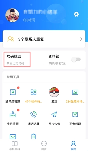 如果您的手機(jī)通訊錄錯亂或名片被誤刪,可通過點(diǎn)擊右下角【我的】→【號碼找回】→【回收站】中,找到最近被刪除的聯(lián)系人,添加回手機(jī)通訊錄中;還可以在【號碼找回】→【時光機(jī)】中,對手機(jī)通訊錄進(jìn)行恢復(fù)。