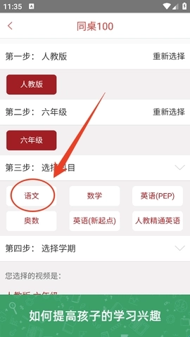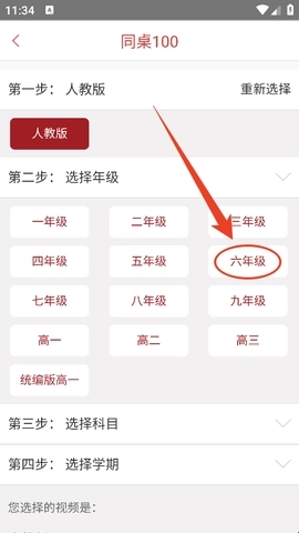 2、接下來要做的是選擇教材版本,此處幾乎涵蓋了所有主流的教材版本。就像我學習使用的是“人教版”,找到相應版本后點擊進入即可。