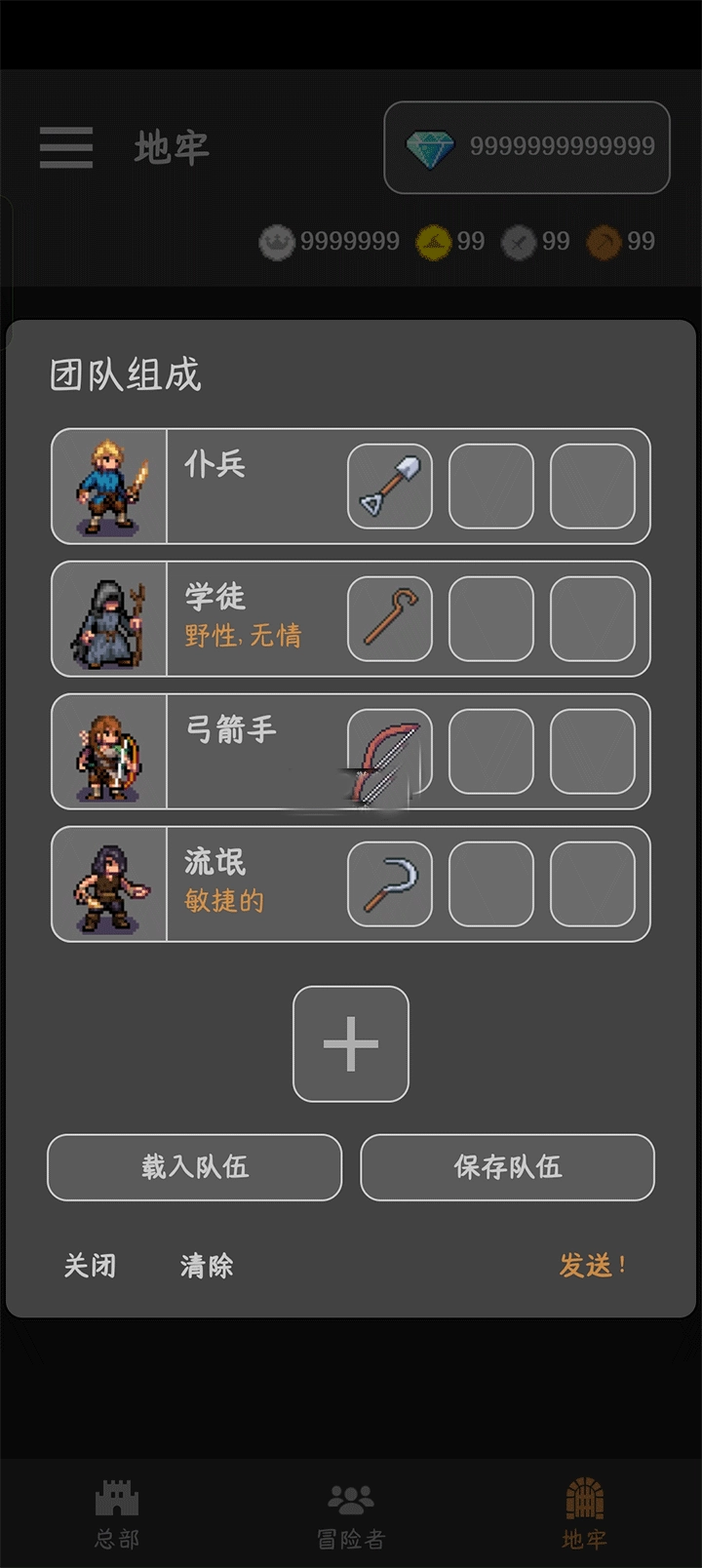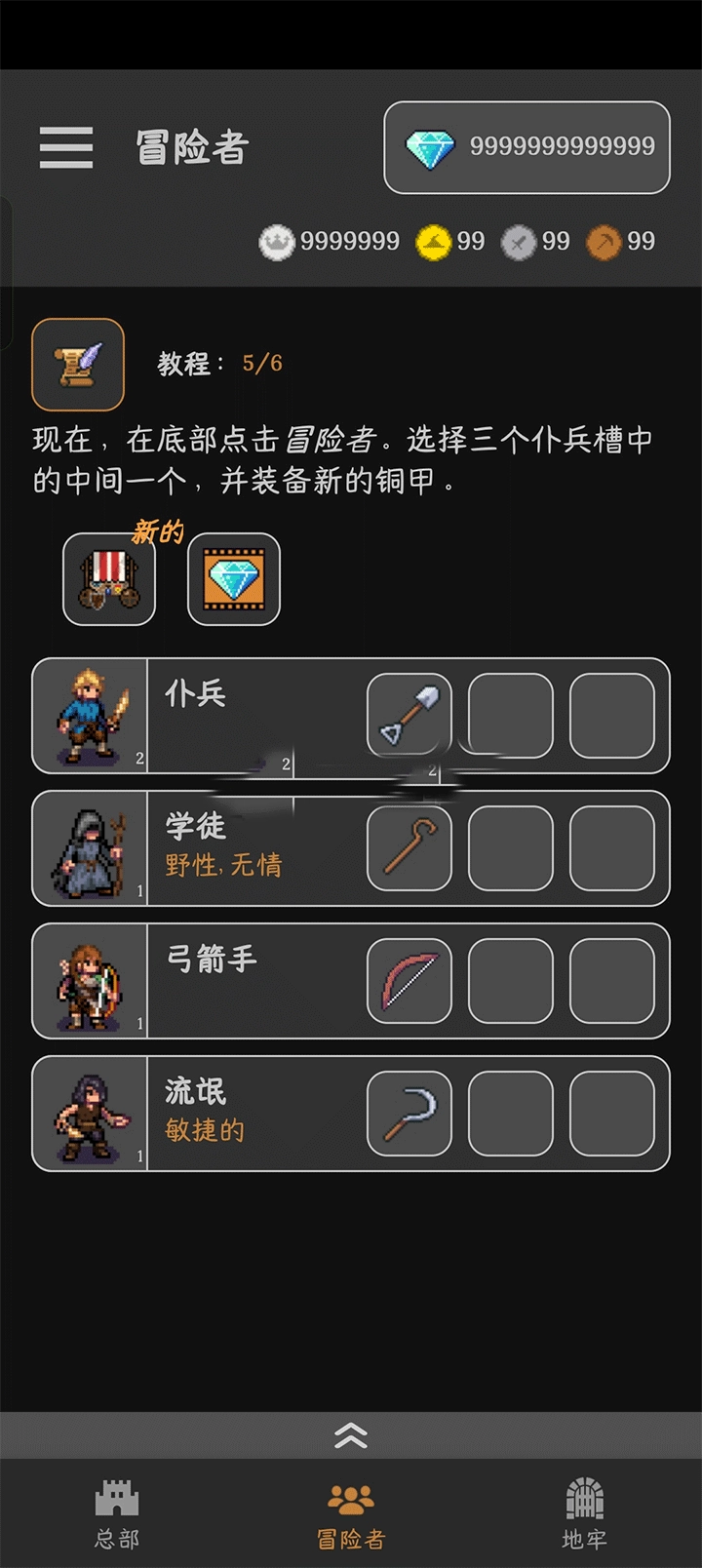 2、招募完后我們就可以點(diǎn)擊地牢來進(jìn)行探險(xiǎn)。
