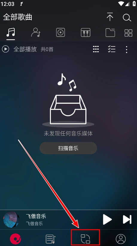 1.打開飛傲音樂,點(diǎn)擊掃描音樂。