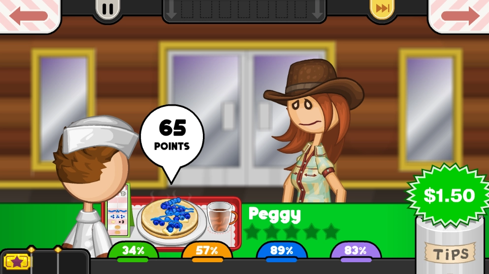 10、把菜品遞給顧客,顧客會(huì)根據(jù)所提供的菜品給出相應(yīng)分?jǐn)?shù)。而玩家獲得小費(fèi)數(shù)額的多少,取決于顧客所打分?jǐn)?shù)的高低。