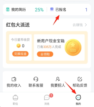 1、打開(kāi)兼客兼職,點(diǎn)擊我的-已報(bào)名;