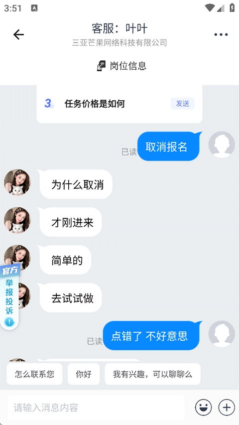 3、與商家/發(fā)布者進(jìn)行溝通取消報(bào)名即可。