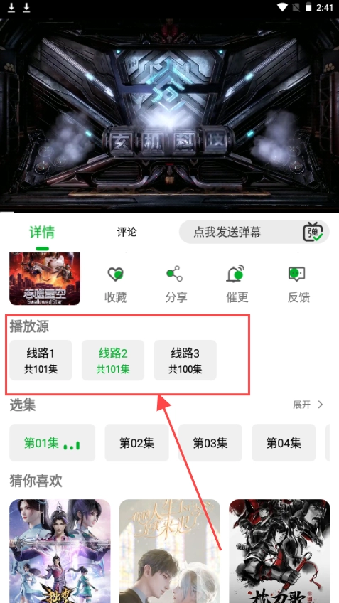 2、以“吞噬星空”為例,在播放界面可以看到多條播放線路供選擇。