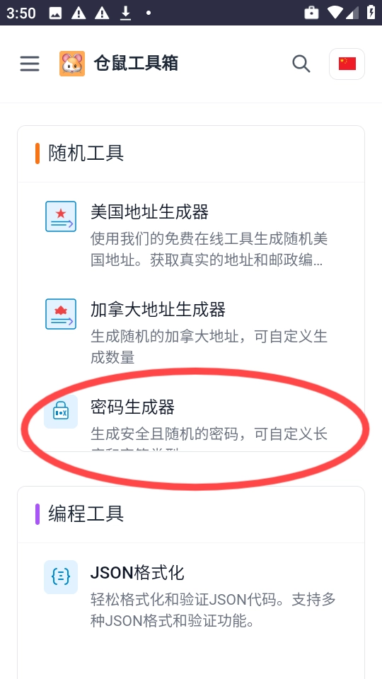 2、在首頁中找到“密碼生成器”選項,點擊進入。