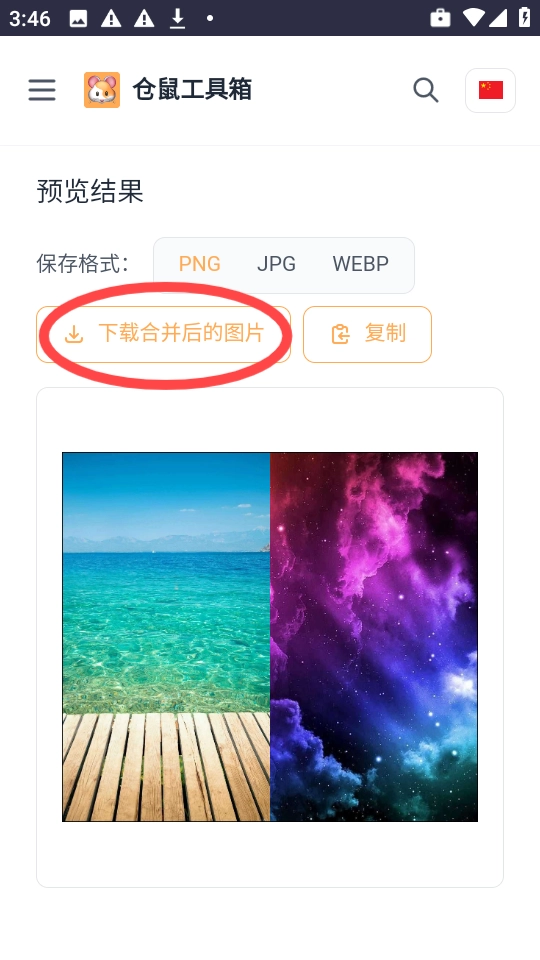 3、確認無誤后點擊“合并后的圖片”,即可保存結(jié)果。