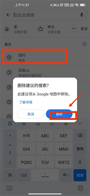 2、在“最近”選項(xiàng)卡中長(zhǎng)按某條記錄,出現(xiàn)刪除提示后確認(rèn)操作即可清除該條記錄。