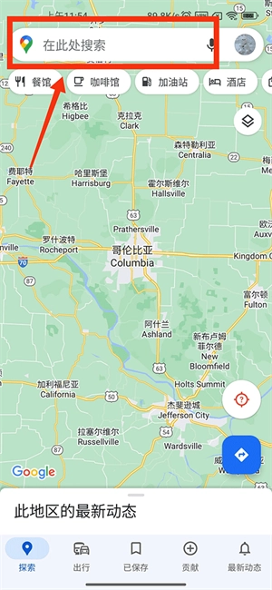 1、啟動(dòng)谷歌地圖后,在首頁(yè)搜索框內(nèi)輸入想要查看的目標(biāo)地名。