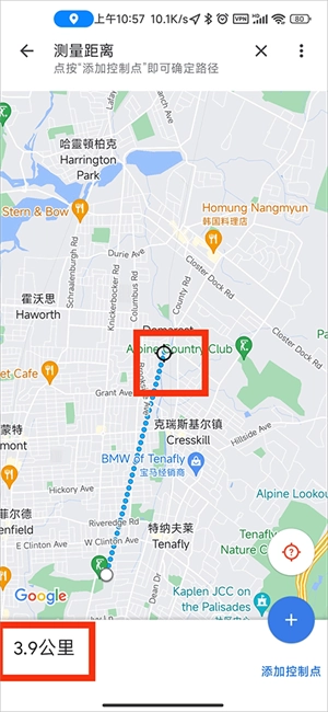 4、對(duì)于復(fù)雜路線,可點(diǎn)擊右下角加號(hào)添加更多控制節(jié)點(diǎn)進(jìn)行精確測(cè)量。