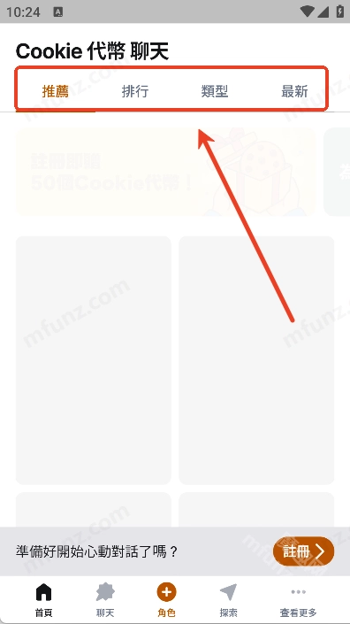 3、進(jìn)入首頁按照分類挑選合適的角色