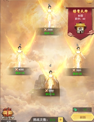 當玩家成功闖關(guān)達到15關(guān),就能開啟云游系統(tǒng)。在云游過程中,玩家可通過挑戰(zhàn)其他玩家來贏取獎勵,同時還有機會觸發(fā)特殊事件,一旦完成特殊事件,便能獲取特殊獎勵。完成云游后,玩家可得到歷練古幣,這些古幣能夠用來兌換強力道具。需要注意的是,玩家每次發(fā)起挑戰(zhàn),都會消耗一次挑戰(zhàn)次數(shù)。挑戰(zhàn)次數(shù)最多可儲存8次,每隔一段時間,系統(tǒng)會自動回復4次挑戰(zhàn)次數(shù)。 云游系統(tǒng)設有排行榜,該排行榜依據(jù)玩家一周內(nèi)所獲得的積分進行結(jié)算。結(jié)算完成后,玩家會根據(jù)自身排名領(lǐng)取排行獎勵。倘若在云游時遭遇實力過強、難以戰(zhàn)勝的對手,玩家還能用10仙玉來刷新對手。