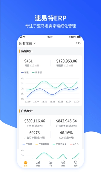 速易特ERP作為一款面向亞馬遜賣家的一站式專業(yè)管理系統(tǒng),能實現(xiàn)運營、客服、倉庫、財務等電商公司各環(huán)節(jié)的一體化管理。這里介紹的是速易特ERP的移動端,它具備銷量統(tǒng)計、廣告管理以及單據(jù)審批等功能,助力運營人員精準洞察關鍵數(shù)據(jù),實時掌握運營管理的每一個環(huán)節(jié),進而提升運營效率。