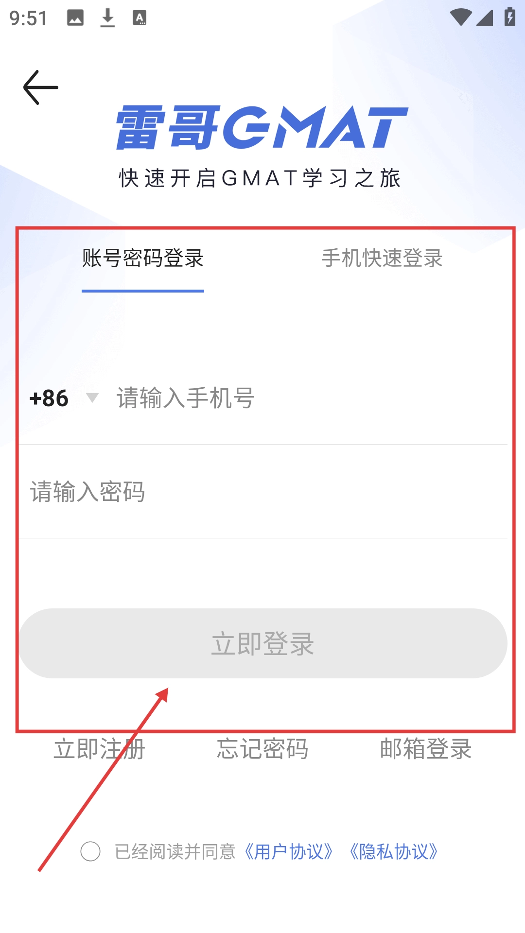 4、在登錄界面選登錄方式,輸入賬號(hào)密碼或手機(jī)號(hào),點(diǎn)擊【立即登錄】,即可完成登錄購(gòu)買課程啦。