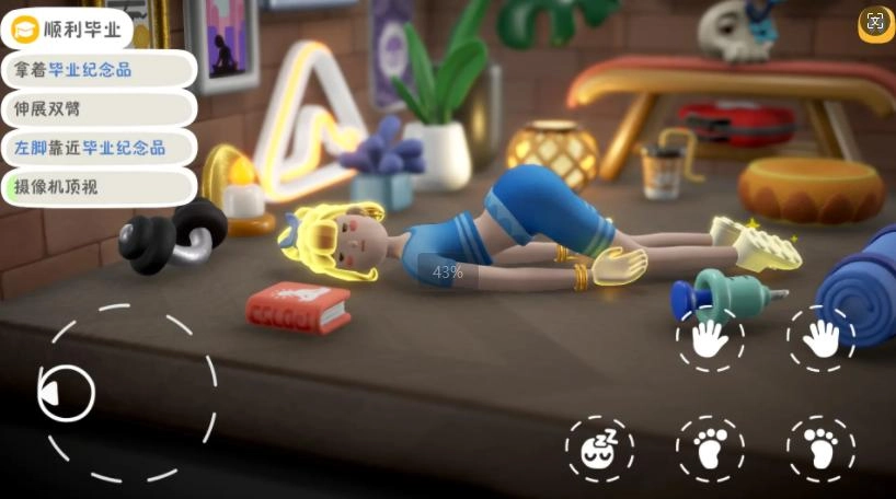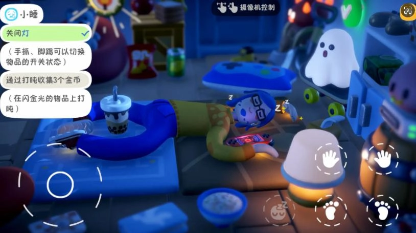 2. 在完成布景后,仔細查看事件卡,借助趴行時產生的慣性,把物品推到指定地點。待任務達成,就可以去睡覺了。
