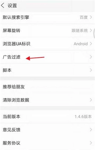 1、進(jìn)入設(shè)置,找到下方的廣告過(guò)濾,點(diǎn)擊功能項(xiàng)的展開(kāi)選項(xiàng)。
