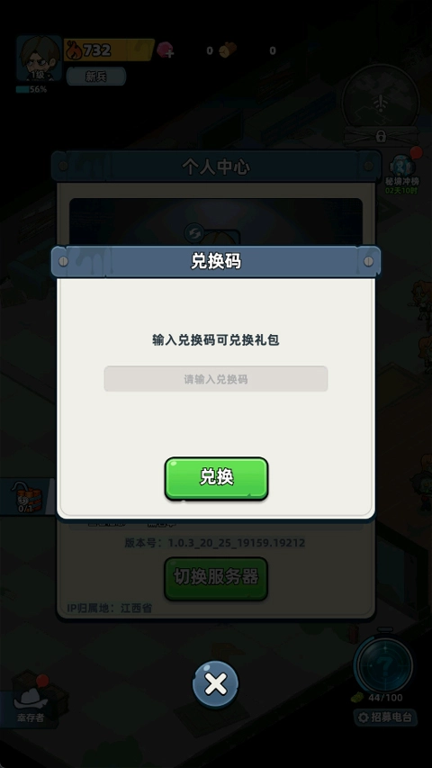 3、最后在兌換框輸入兌換碼領取即可。