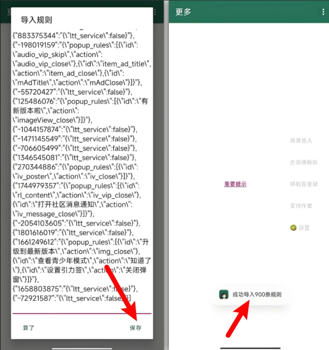 將復制的規(guī)則粘貼進來,并點擊保存,即可完成規(guī)則導入。