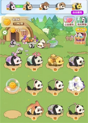 3. 逐級(jí)解鎖機(jī)制:通過合成解鎖更多熊貓?jiān)煨停屍诖信c成就感交織。