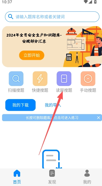 3、請(qǐng)先題庫或是導(dǎo)入題庫以后,再來使用這項(xiàng)讀屏搜題的功能。