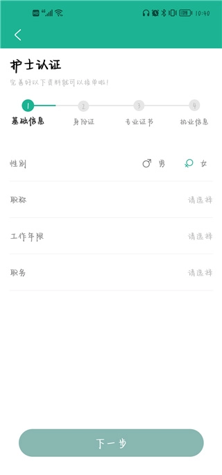 3、填寫性別,職稱,工作年限,職務(wù)都能夠基本信息。
