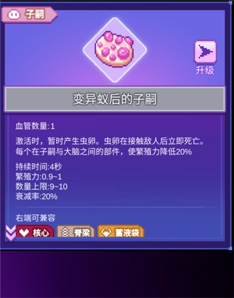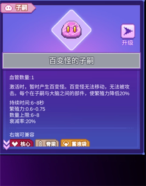 3、游戲中包含上百種功能各異的器官。每種器官還可以通過變異,獲得額外的詞綴。