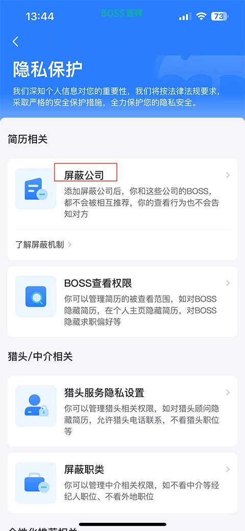 5、對(duì)某家公司進(jìn)行屏蔽操作后,該公司將無(wú)法瀏覽到您的簡(jiǎn)歷信息,您也不會(huì)再接收到來(lái)自這家公司的職位推薦內(nèi)容。?為保障您的隱私安全,平臺(tái)會(huì)自動(dòng)為您屏蔽過(guò)往工作經(jīng)歷里所涉及的公司,不過(guò)當(dāng)前還不支持直接屏蔽整個(gè)行業(yè)或者特定崗位。?