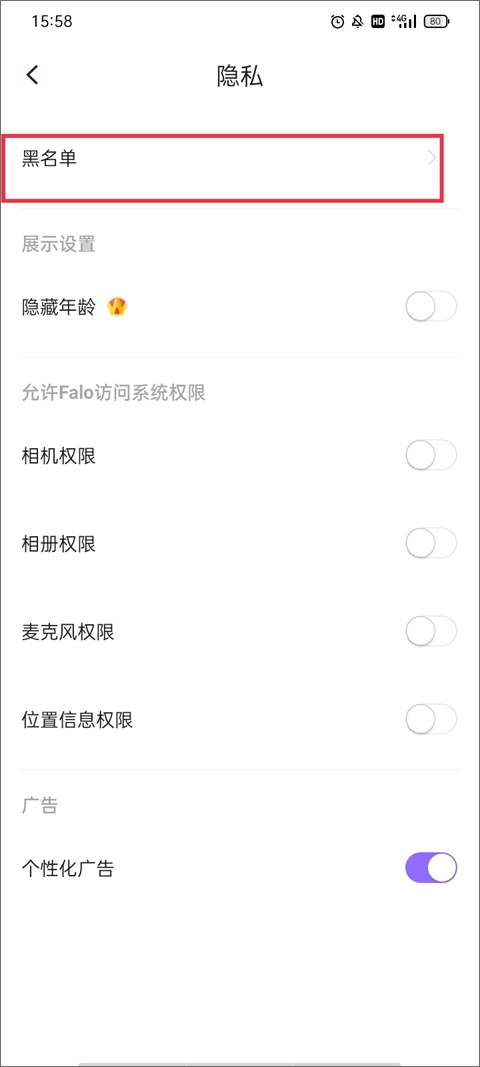 4、您可以在【我的->設(shè)置->隱私管理】頁面查看當(dāng)前的黑名單列表。