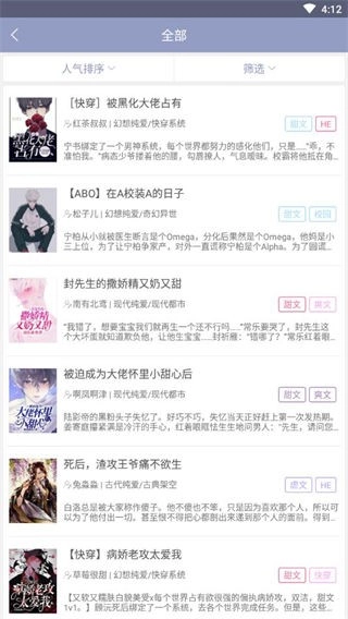 耽美小說大全App是一款為耽美題材愛好者量身打造的在線閱讀平臺,整合了大量優(yōu)質資源,能夠滿足不同讀者的多元需求。在這個平臺上,你可以自主發(fā)掘喜歡的CP組合,在精彩的耽美世界里暢快探索。所有內容都支持免費閱讀,能有效激發(fā)你的靈感和創(chuàng)作熱情。期待你加入這個滿是愛意與創(chuàng)意的社區(qū),盡情釋放自己的無限潛能。