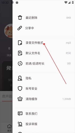 3、進入到隨聲鹿設置中,點擊【錄音文件格式】。