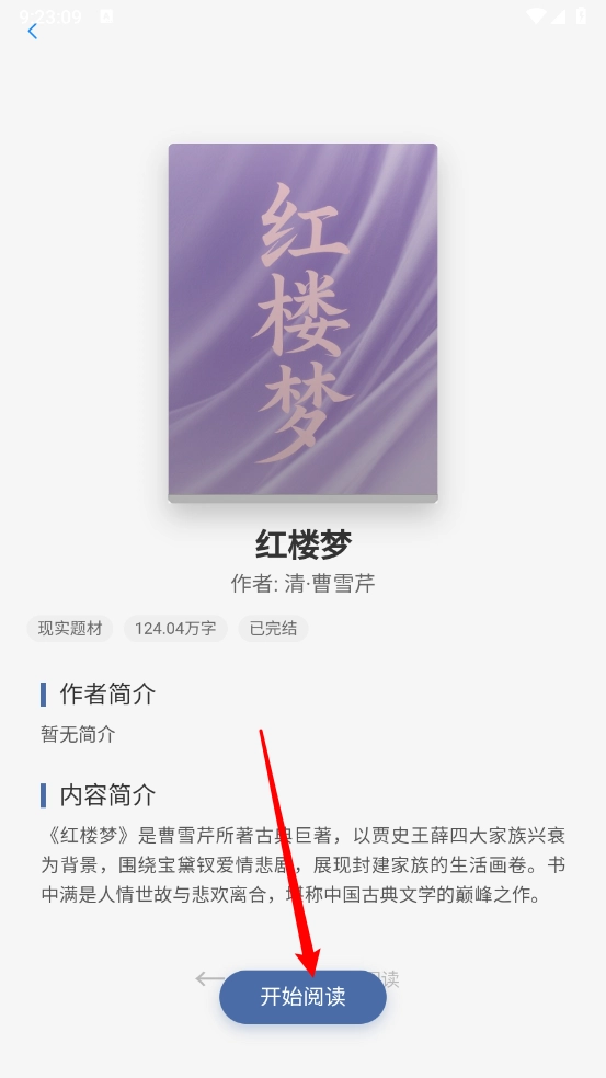 3、一鍵打開(kāi),在小說(shuō)詳情頁(yè),點(diǎn)擊"開(kāi)始閱讀"。