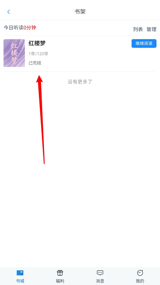 5、最后在“我的”頁(yè)面點(diǎn)擊進(jìn)入“我的書(shū)架”,就能查看已加入的小說(shuō)資源了。