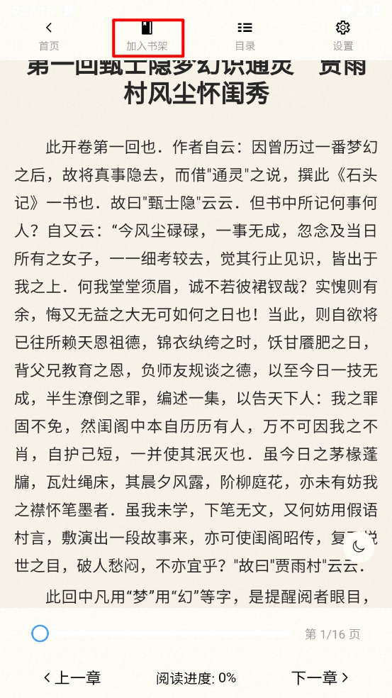 4、然后在閱讀界面點(diǎn)擊上方的"加入書(shū)架"即可。
