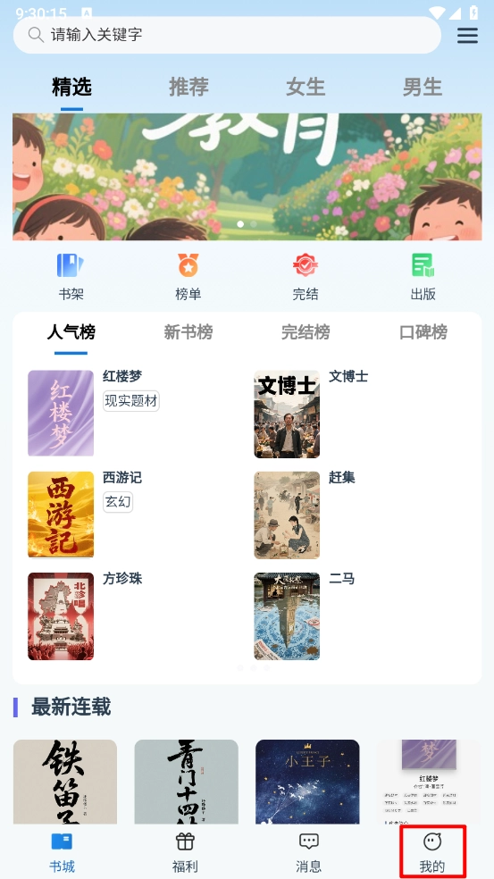 2、在書(shū)城中選擇所需喜歡的小說(shuō)資源。